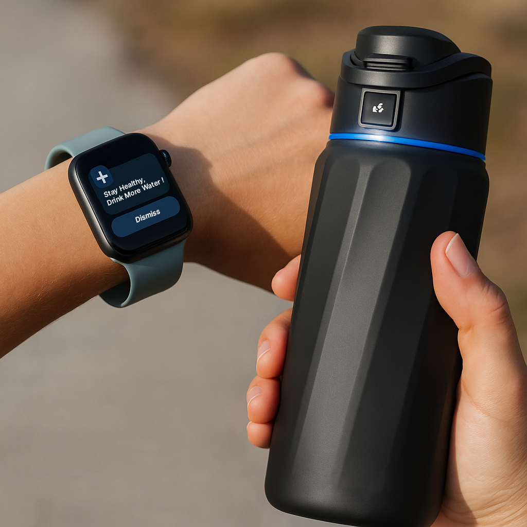 Our sensor automatically records every sip, syncing seamlessly with the app so you always know your hydration level in real time.